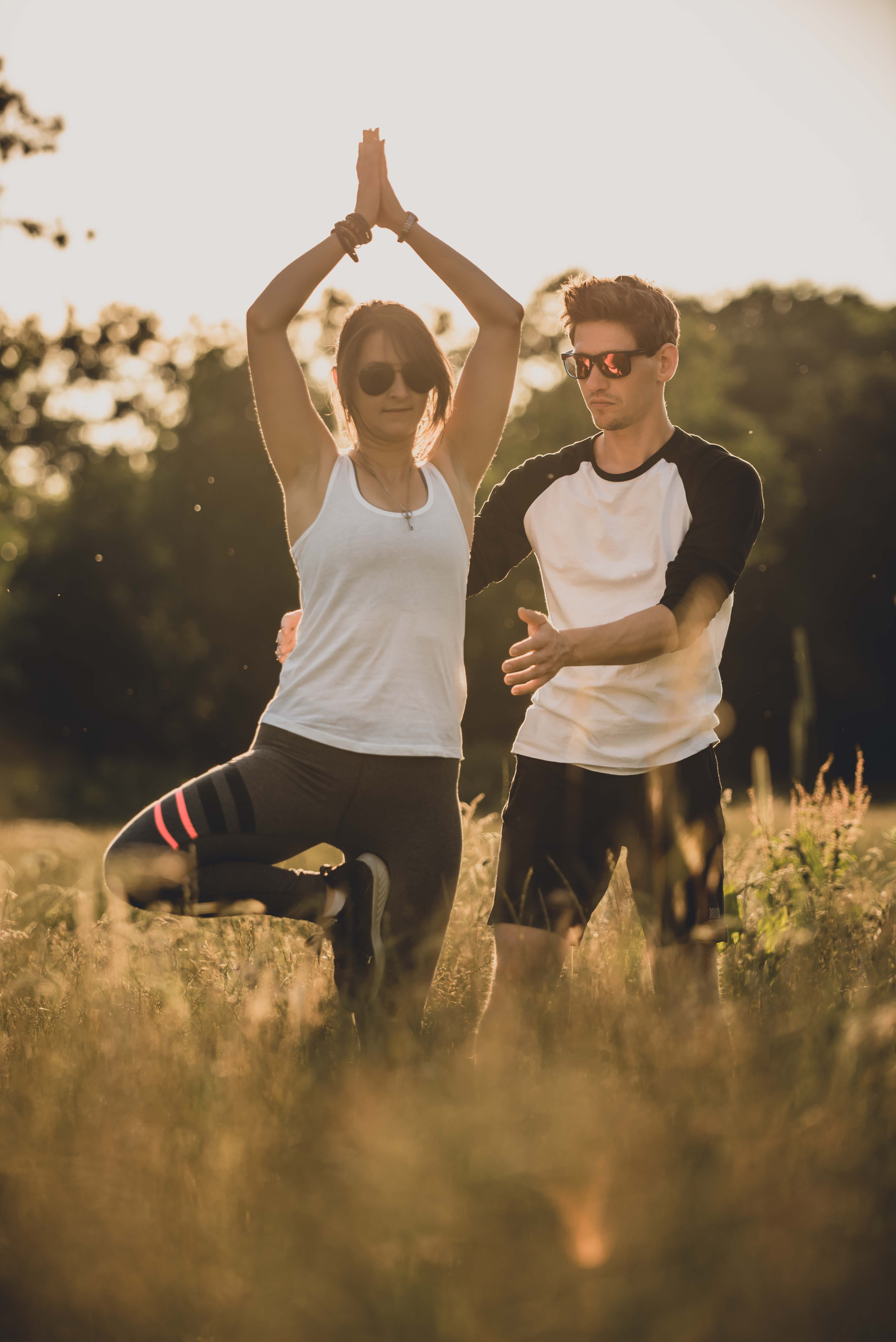 - des vêtements de sport confortables (t-shirt/débardeur, short/legging, pieds nus/baskets) avec manches longues si l’herbe vous irrite la peau (comme moi)